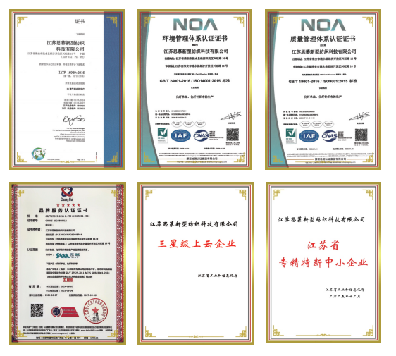 这些认证涵盖了汽车、环保、职业健康、能源管理及生态安全等多个领域,为公司服务全球高端客户提供了坚实的资质保障。其中,IATF16949认证标志着思慕纺织正式进入汽车行业供应链体系,产品已广泛应用于比亚迪、日产、吉利等知名品牌。