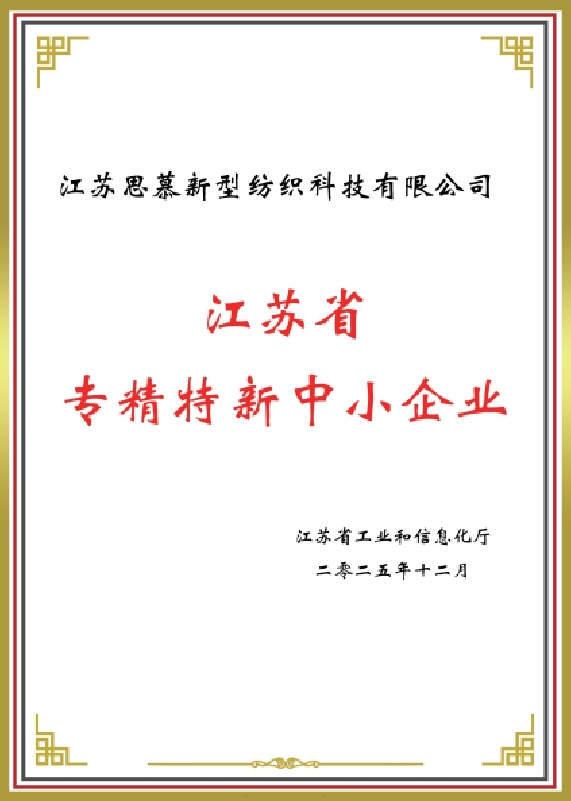 近日,江苏思慕新型纺织科技有限公司(以下简称“思慕纺织”)喜讯频传。公司在技术创新、质量管理、数字化转型及专业化发展等方面连续获得多项权威认定,标志着企业综合实力迈上新台阶。