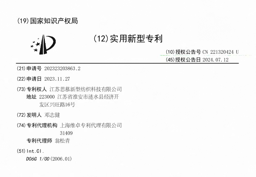 思慕纺织“一种3D网布表面吹刷除尘设备”获国家实用新型专利授权(专利号:CN221320424U)。该设备通过高压气流与软毛刷辊的协同作用,对3D网布表面进行吹扫和刷除,有效去除附着在网布表面的浮尘、纤维屑等杂质,提升产品洁净度。